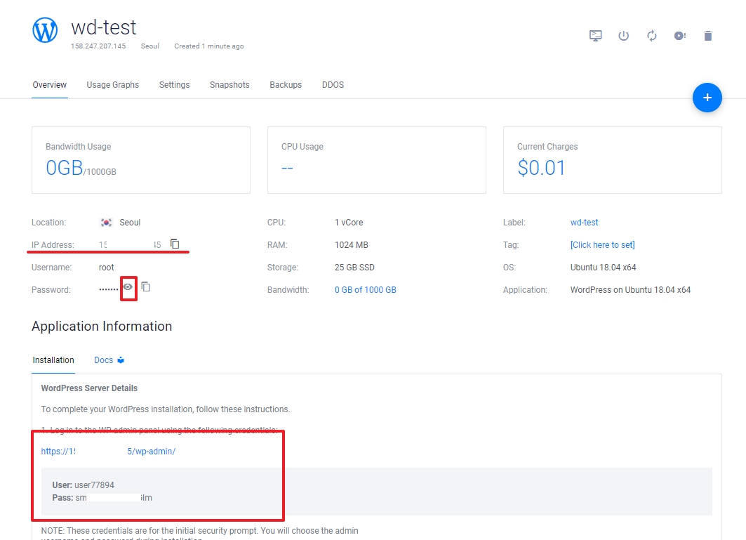 그러면, 위 사양에 나와있듯이 25기가 SSD 공간에 워드프레스 설치 준비가 끝난겁니다.