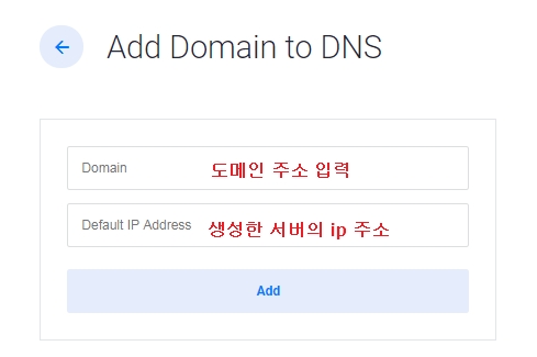 (4) 생성한 서버의 ip 주소와 연결할 도메인 주소를 입력합니다.