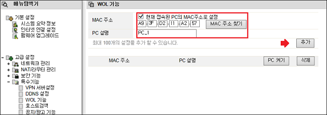 - 공유기의 WOL에서 사용하고자 하는 데스크톱을 연결
